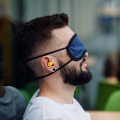 Маска изготовлена из нескольких слоев плотного полиэстера черного и синего цветов. Она плотно прилегает к лицу и не пропускает яркий свет, который мог бы помешать сну. Беруши выполнены из полиуретановой пены и поставляются в прозрачном пластиковом контейнере, который оберегает их от утери.