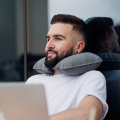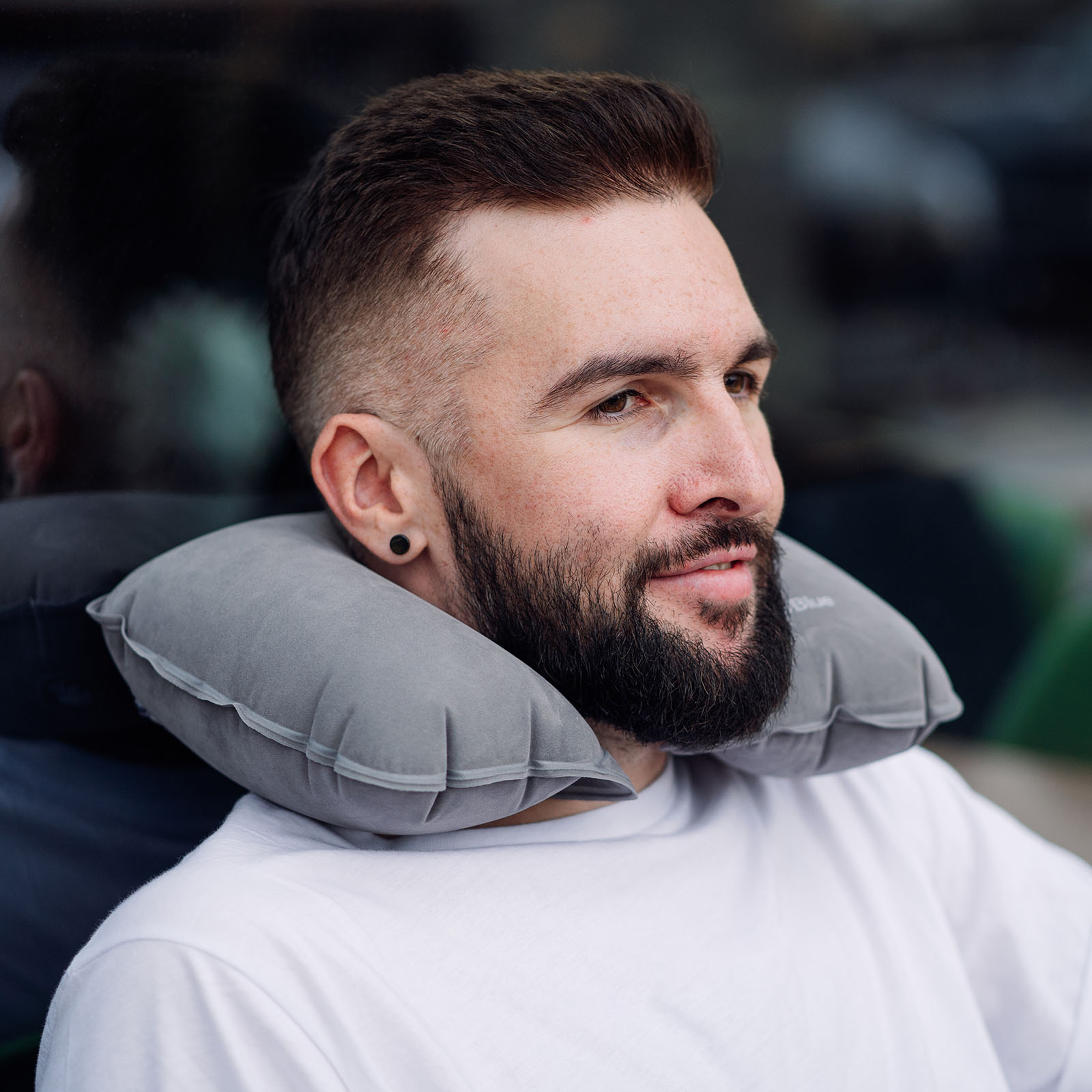 Использовать Travel Blue Neck Pillow очень просто: достаньте её из чехла, надуйте и поместите под голову, поместив края на плечи. В таком виде подушка мягко поддерживает шею, не давая мышцам затекать и снимая с них напряжение. Надувается Neck Pillow всего за пару минут. При этом производители рекомендуют надувать подушку на 3/4 объема – это идеально для комфортного отдыха. После использования просто откройте Neck Pillow и выпустите из неё воздух, а затем сложите и уберите в чехол. В сложенном виде подушка занимает минимум места и помещается в карман верхней одежды или в любое отделение рюкзака.
