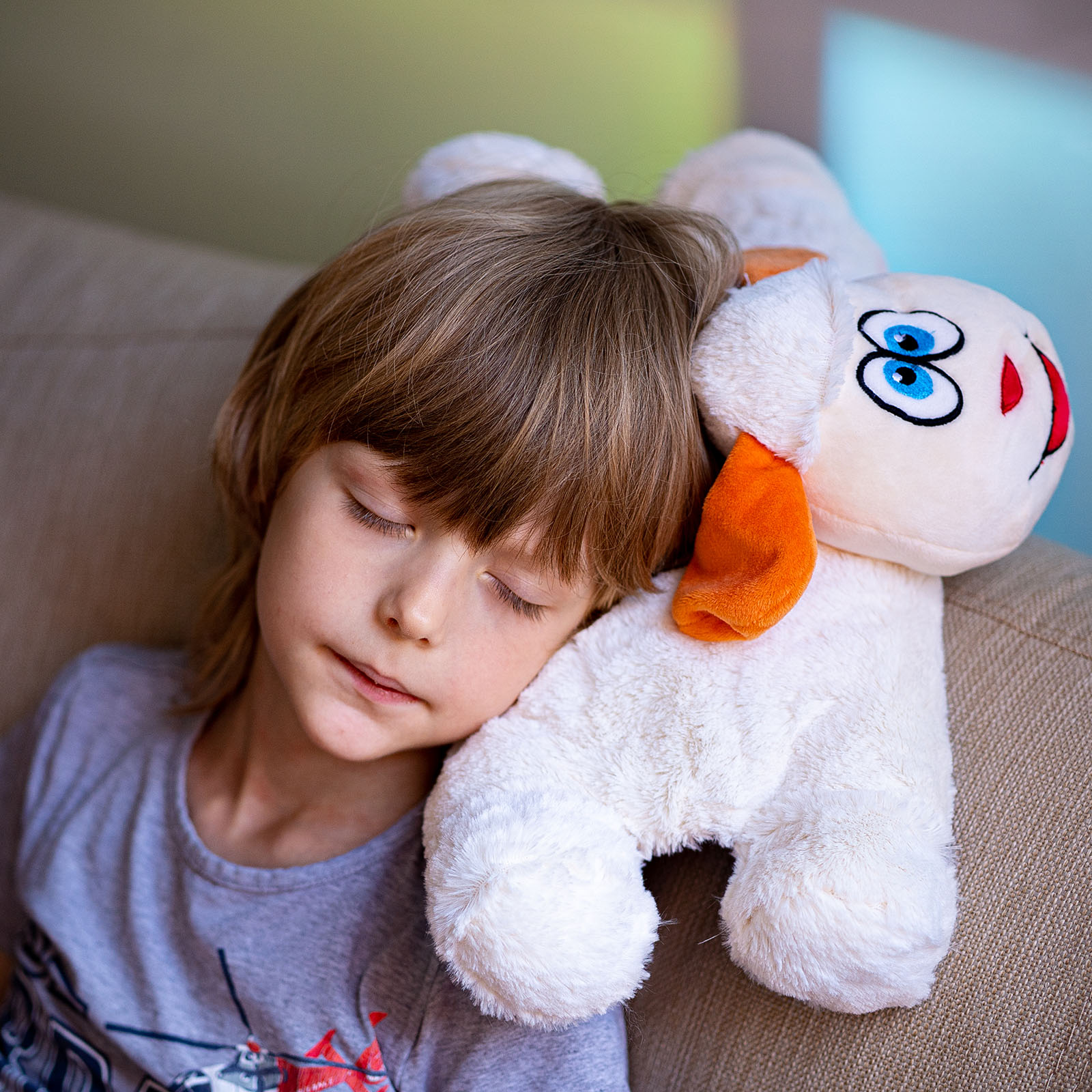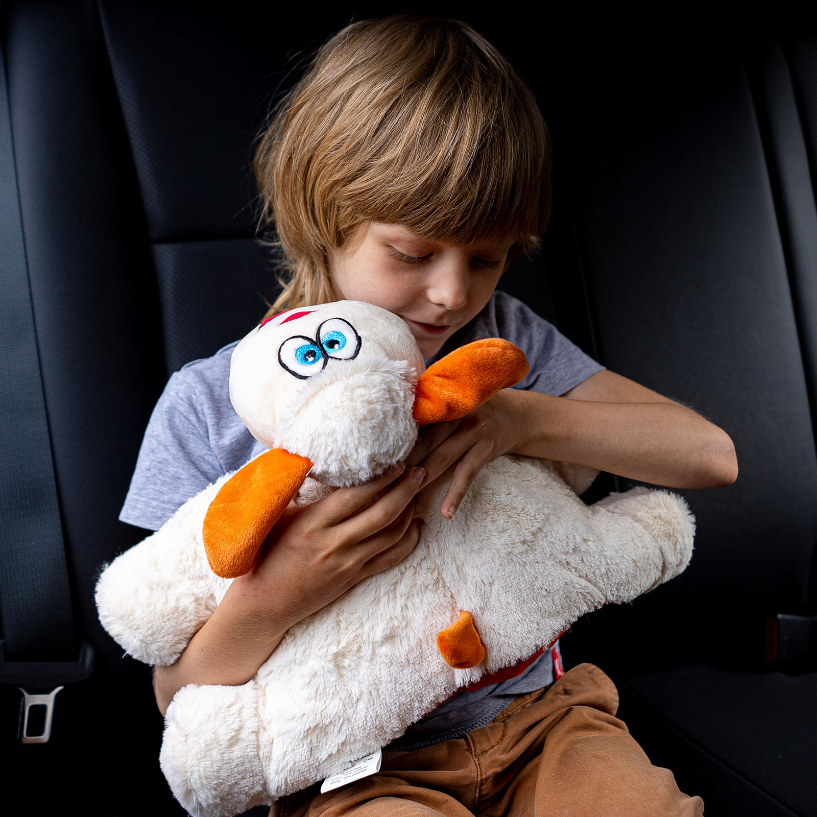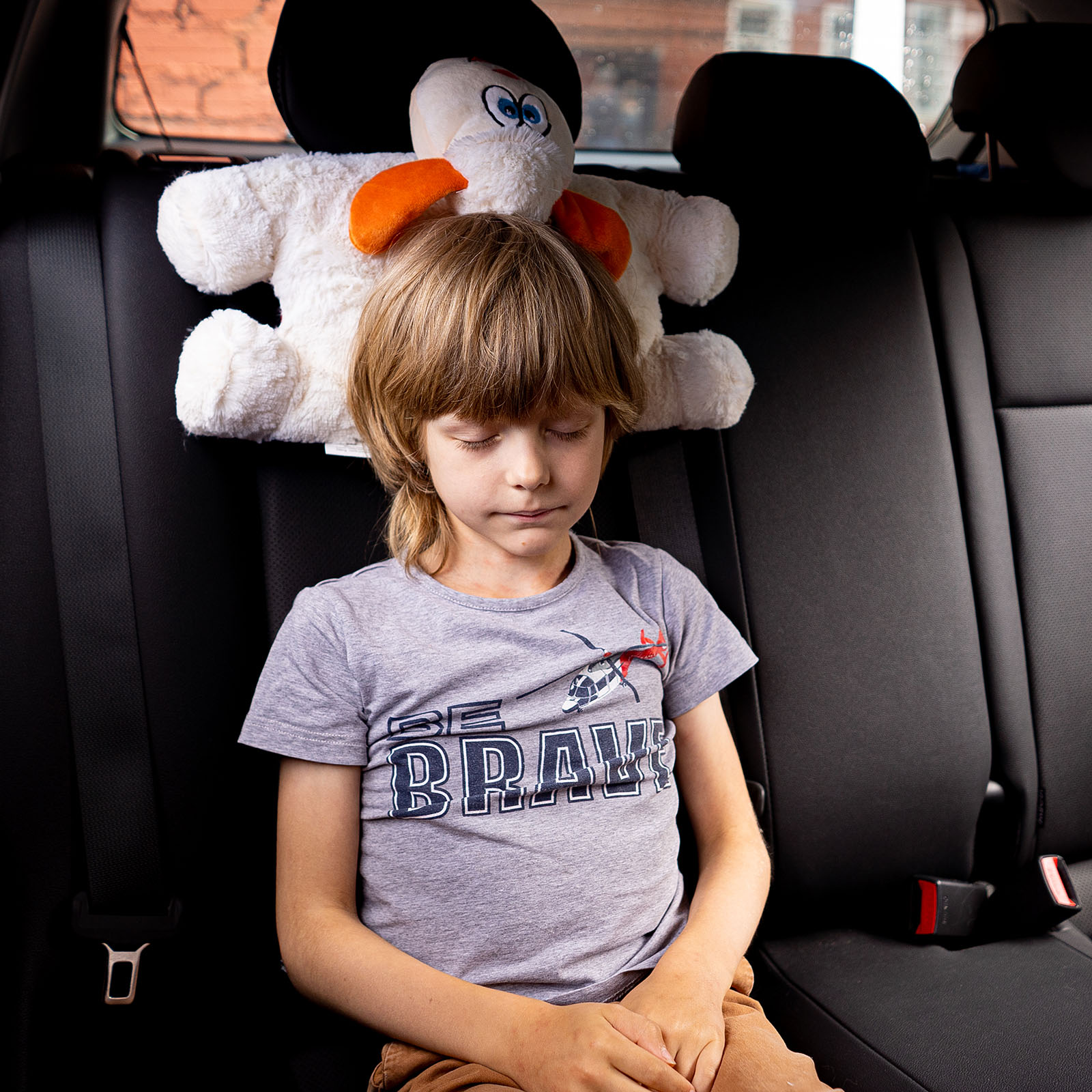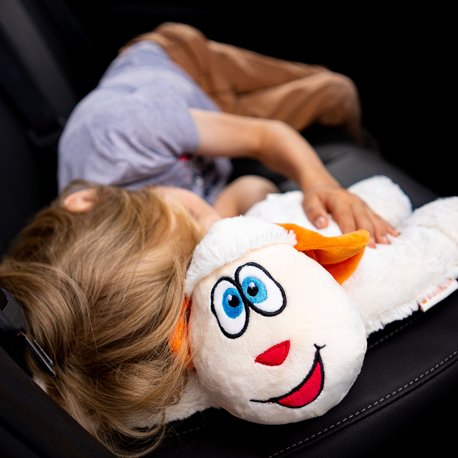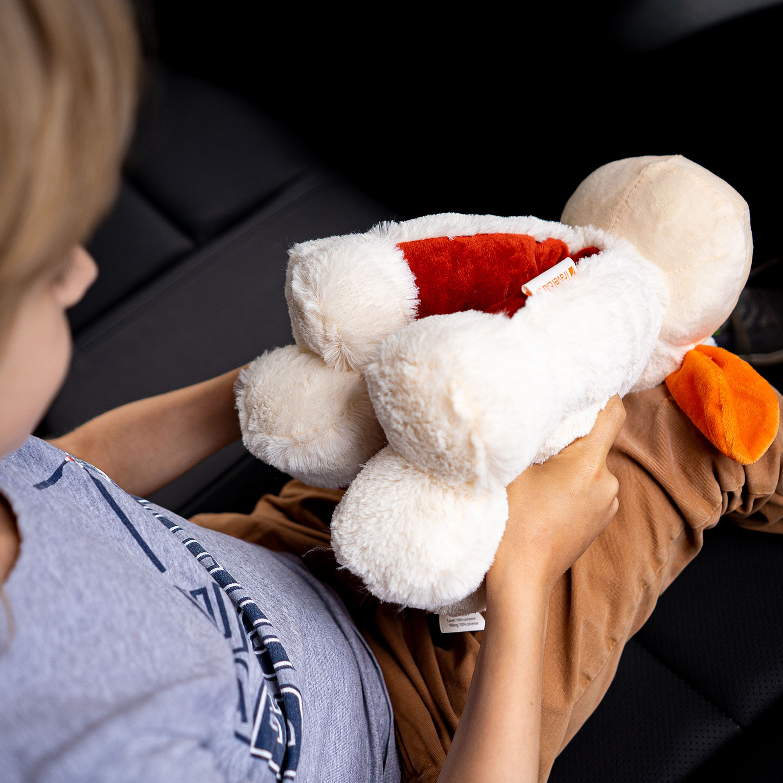 Аксессуар изготовлен из высококачественного полиэстера, легкий и приятный на ощупь. Дизайн не оставит равнодушным ни одного ребенка, а компактный размер (27 х 24 х 15 см) позволяет сложить подушку в любой рюкзак или сумку.